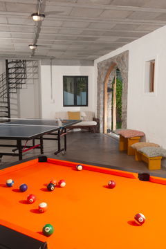 The games room down on the ground floor will prove irresistible to older kids and teens (and probably the adults too!) as it’s furnished with a pool table, a table tennis table and a PS3. Here, lovely arched stable doors open out onto a lawned lower garden. There’s also a shower room with a WC on this floor.