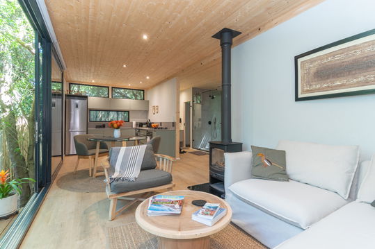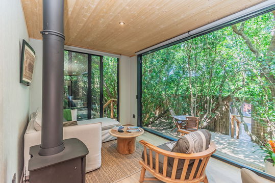 Tucked away in the heart of beautiful Noordhoek, this private luxury suite offers the perfect blend of comfort and style. Designed for relaxation, the space features a king-size bed, a cozy log fireplace, and a private hot tub under the forest, ideal for romantic evenings or peaceful solo retreats.