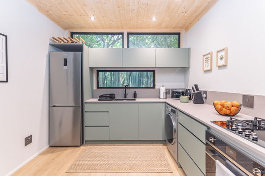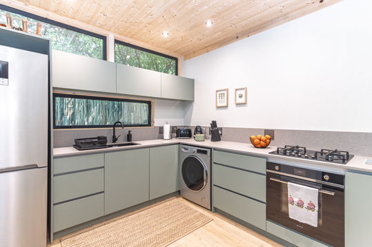 The suite includes a king-size bed, modern bathroom, fully equipped kitchen with everything you need including a washer dryer. There is also an outdoor BBQ area for al fresco dining.